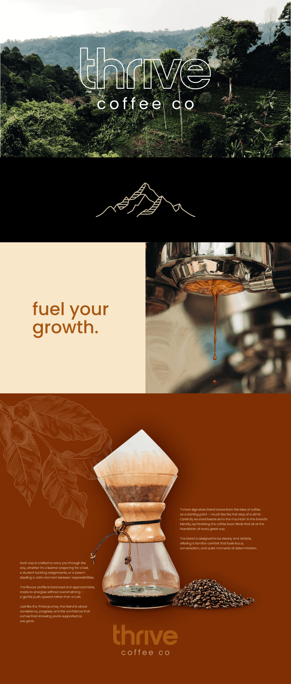 Nestled in the heart of Springs, Thrive Coffee Co was created as a space for growth — a place where early mornings, big dreams, and everyday routines meet. Inspired by the quiet strength of the mountains, the brand reflects the journey of showing up, climbing higher, and taking a moment to look out over the horizon. With the slogan “Fuel your growth,” Thrive speaks to students finding their footing, learners chasing progress, and parents supporting them every step of the way. It’s not just a coffee stop, but a daily ritual that reminds the community that growth happens one cup at a time.